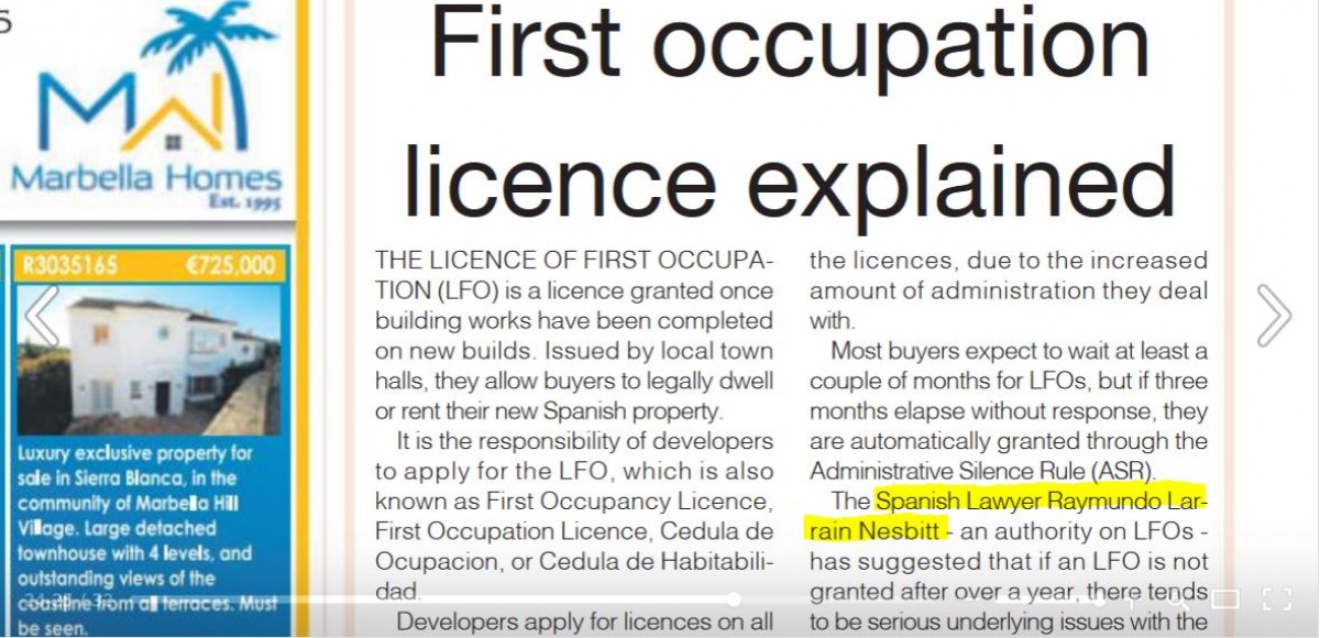 EuroWeekly News kindly published my article on Licence of First Occupation (original from 2005) on issue 1691, 30th November - 6th December 2017, page 24 of the Property Guide (or page 84 main newspaper).