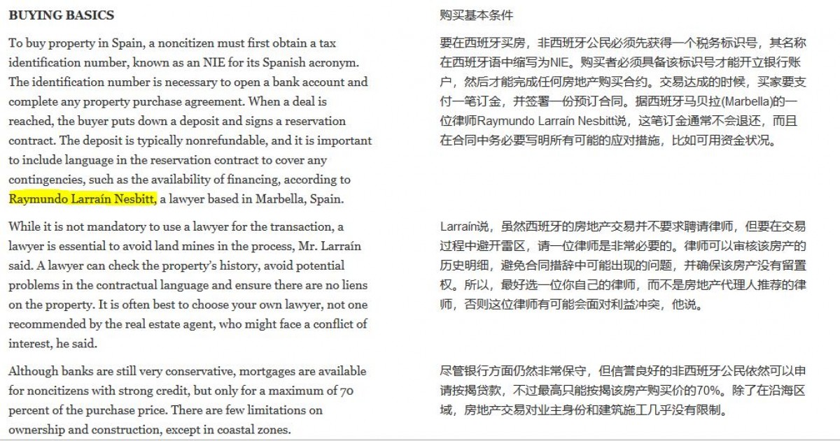 Chinese newspaper China Style kindly reproduces our interview on buying property in Spain and applying for a Golden Visa programme.