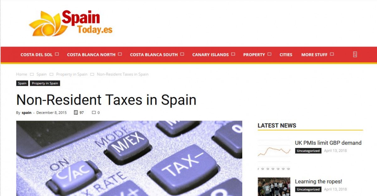 SpainToday.es kindly reproduces our article on Non-Resident Taxes in Spain.