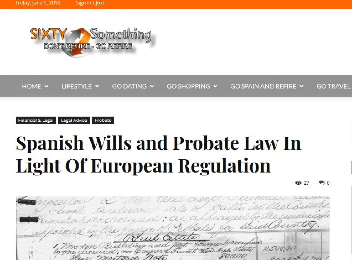 Sixtysomething.co.uk kindly reproduces our article on Spanish Wills and Probate Law In Light Of European Regulation.
